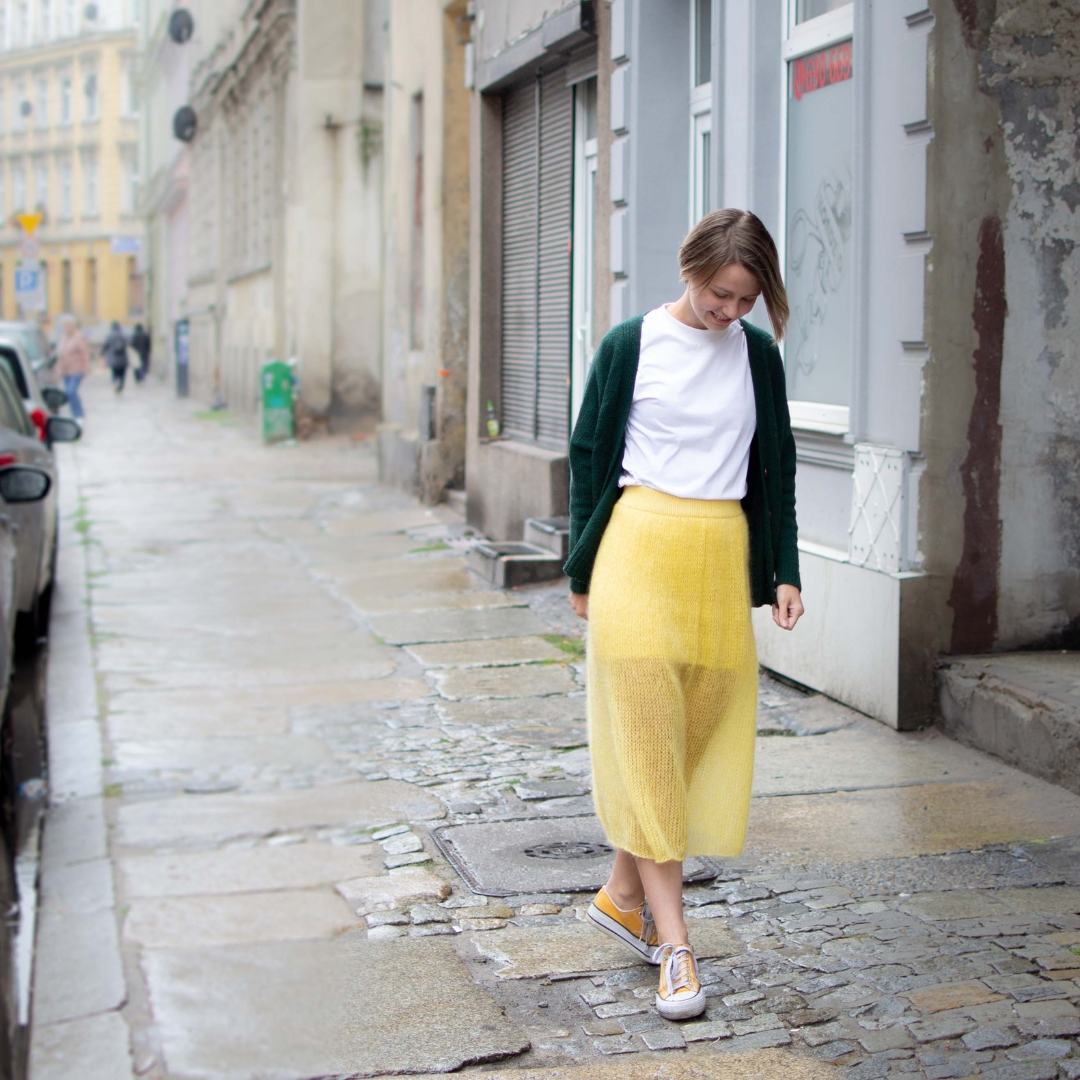 Twoja nowa ulubiona część jesiennej garderoby! My Fluffy Skirt to projekt, który udowadnia, że spódnica na drutach może być jednocześnie lekka, przewiewna i cudownie ciepła. Dzięki połączeniu szlachetnego merynosa z puszystym moherem, stworzysz element stylizacji, który przyciąga wzrok – zwłaszcza w soczystych, jesiennych kolorach.
